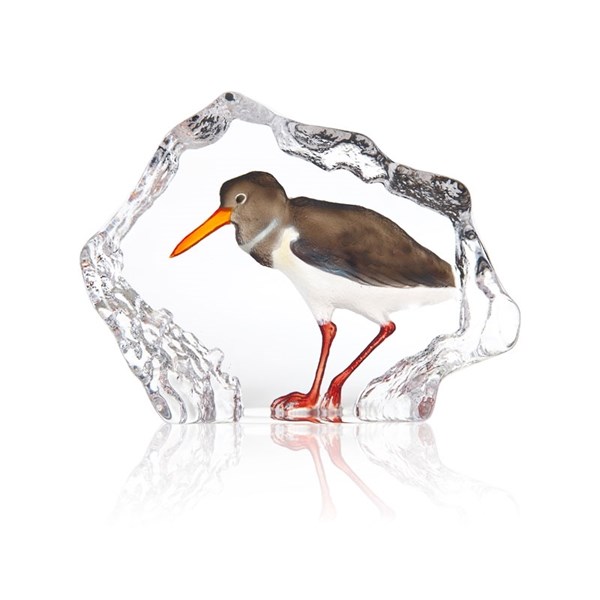 Gjutet kristallblock med en strandskata som motiv. Kristallocket är handgjort i Målerås och signerad i botten. Levereras i en presentkartong. Design: Mats Jonasson. Mått: 165×125 mm. Art.nr 34271