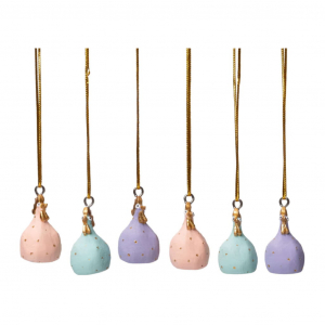 Höna 4cm Hängande 6-pack, Rosenkvarts/Jade/Ametist